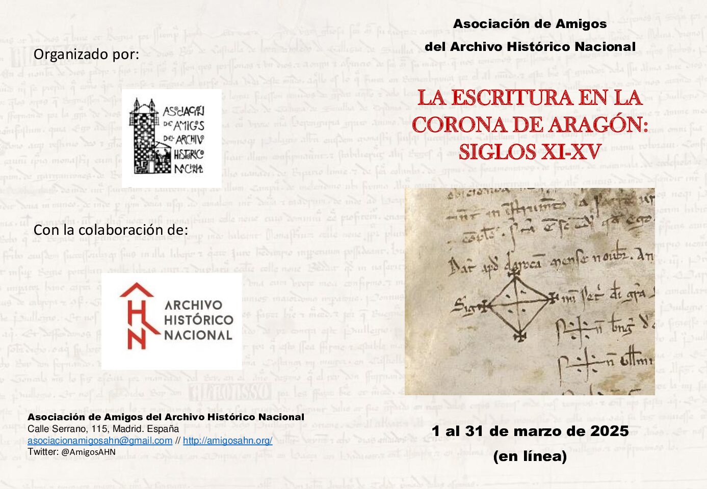 La Asociación de Amigos del Archivo Histórico Nacional ha organizado un Curso de Paleografía sobre La escritura en la Corona de Aragón: siglos XI-XV.